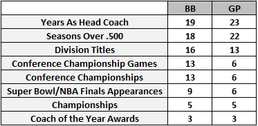 Based on their respective styles in dealing with the media, we hear a lot of comparisons between New England Patriots head coach Bill Belichick and San Antonio Spurs head coach Gregg Popovich. What we don’t hear anything about is how similar their careers have been in terms of development, duration, style, and success.
