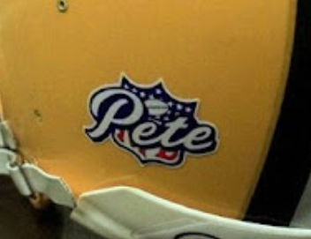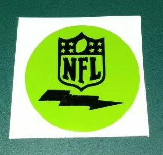 This little green circle worn on the back of the helmet near the top of the head indicates the player that has a radio communication device in his helmet. The radio only works one way; so the coaches talk and the players listen, unlike how they behave on social media.