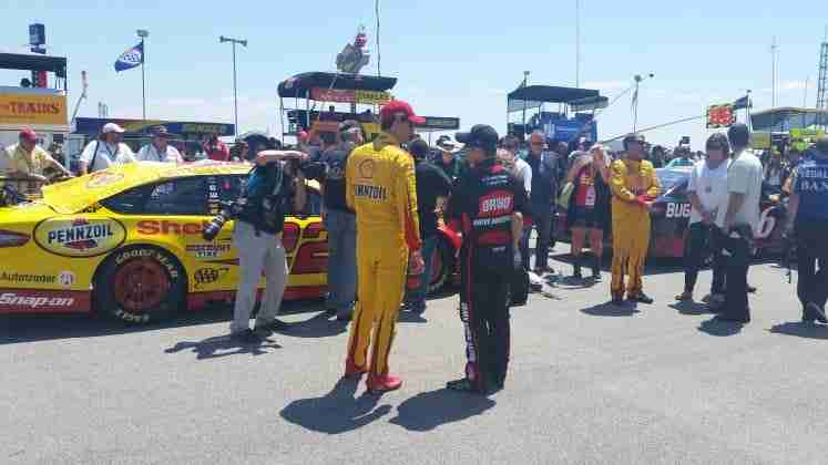 Before I even knew what happened, I turned around and there was Joey Logano, having a conversation. I was so close to Brad Keselowski, I could’ve reached out and kissed him. Or strangle him, like Jeff Gordon in Texas last year. So I took these shots, just for you:
