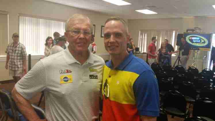 I went to the meeting hoping to meet NASCAR legend/NFL icon Joe Gibbs, who I was fortunate to interview. I wore the loudest shirt in my wardrobe, so I’d be easy to find, and it worked out: