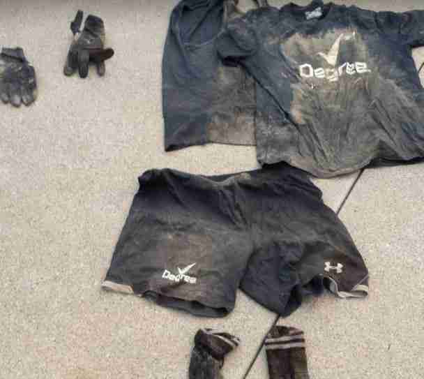 I threw my shoes away, but kept the uniform Degree was nice enough to hook us up with. Here is how it looked after a plane ride from California to Nebraska: