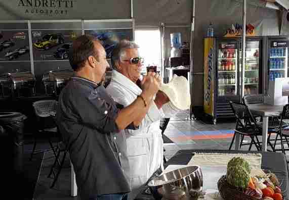He really did. Even though it looks just like Dustin Hoffman in “Wag The Dog,” that’s actually Mario Andretti. He was then nice enough to let me get in front of the camera and ask him a few questions: