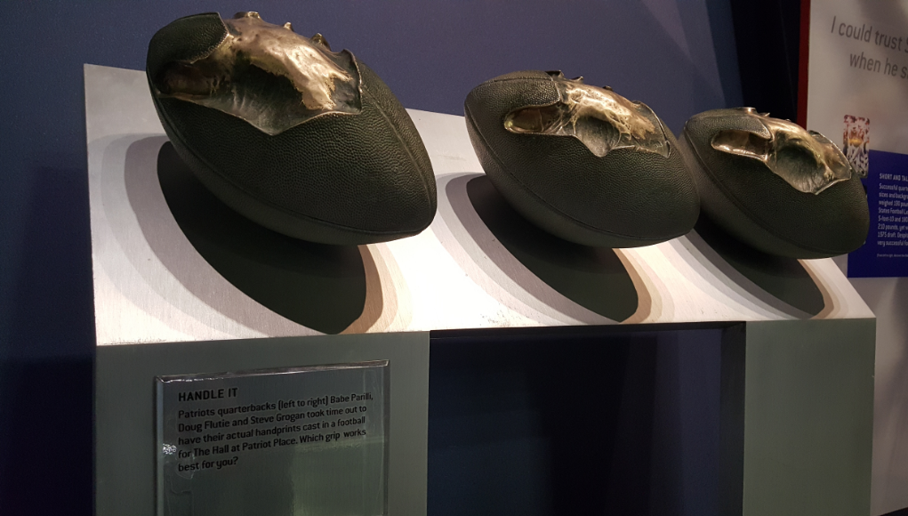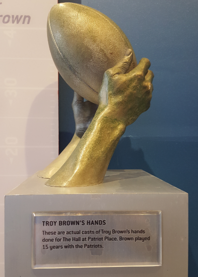 My absolute favorite exhibit was one that showed the size of former Patriots’ QB hands. Even though I am a germaphob and there was no Purell in sight, I couldn’t resist:
