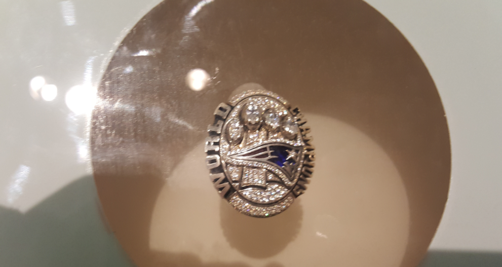 Accompanying each Patriots’ Super Bowl trophy are the actual rings that players and coaches received. Here is the Patriots Super Bowl XLIX ring: