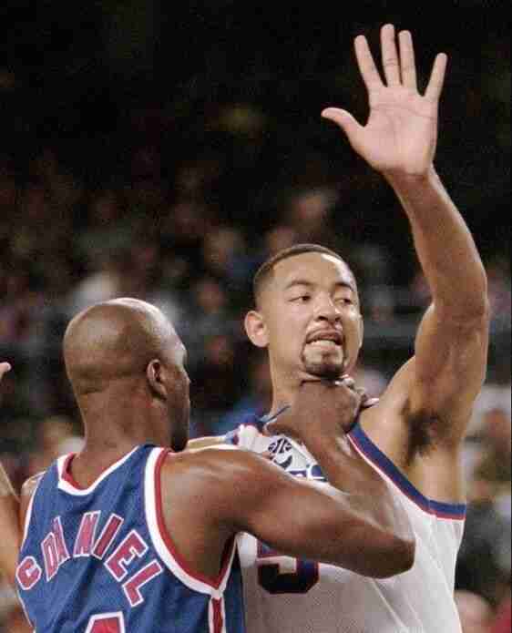 Look at that bicep, you boob. It would take eight of Manute Bol’s arms to make one Karl Malone arm. When he came into the league the notion that weightlifting was bad for basketball players still existed. In the pre-protein shake, pre-creatine NBA of the 80s and 90s, nobody was as jacked as The Mailman.