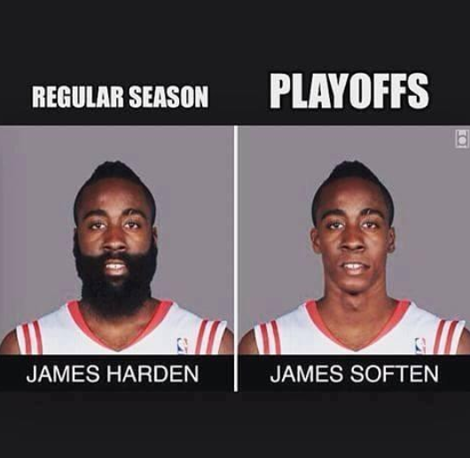 EXCEPT, in the playoffs when James Harden annually converts to his alter ego, James Soften: