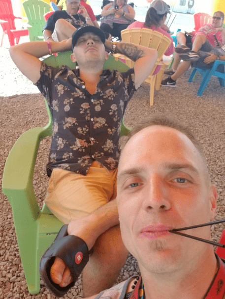 Also, beer is cheaper than water in Fireball Alley. $2 for a strawberry Natty? I’m in. Here’s Joe (two heads turn) Kinsley counting his calories: