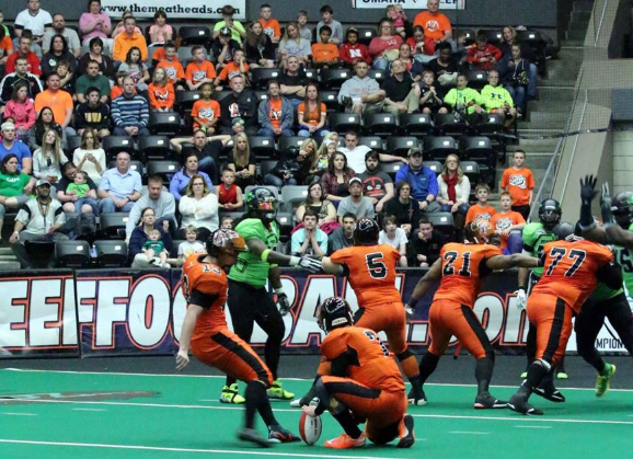 The Omaha defense then compiled their best defensive series of the game. With 1:17 left in the half, the Bombers took possession and moved the ball down the field in four plays, setting themselves up for first and goal from the Omaha 8-yard line. After gaining six yards on the ensuing three plays, the series culminated in a fourth down attempt from the two-yard line.