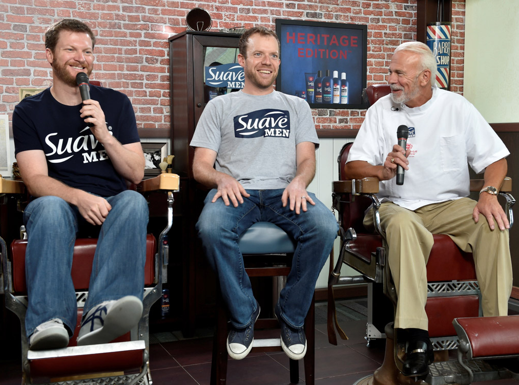 For the event, Suave converted a suite at Michigan International Speedway to the “Speed and Style Salon,” a 1930s-era replica barbershop. Hosting the event was famed NASCAR pit reporter Matt Yocum. And just like a woman, I had to get a selfie with Dale Jr.
