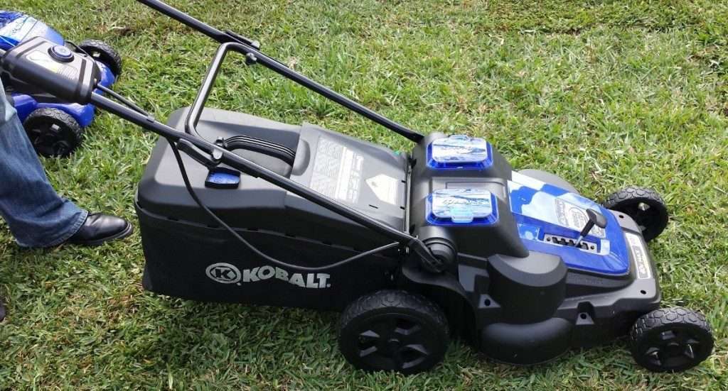 With either the Kobalt 40V Max 20-in (which features dual blades) or 19-in mower, the engine is akin to a whirring sound that you can easily maintain a conversation over. With no pull-cord, both mowers start with the press of a button, like a luxury automobile, and automatically stop when you release the pull-bar.
