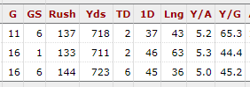 McKissic had 85 carries for 365. Hines had 89 for 380.