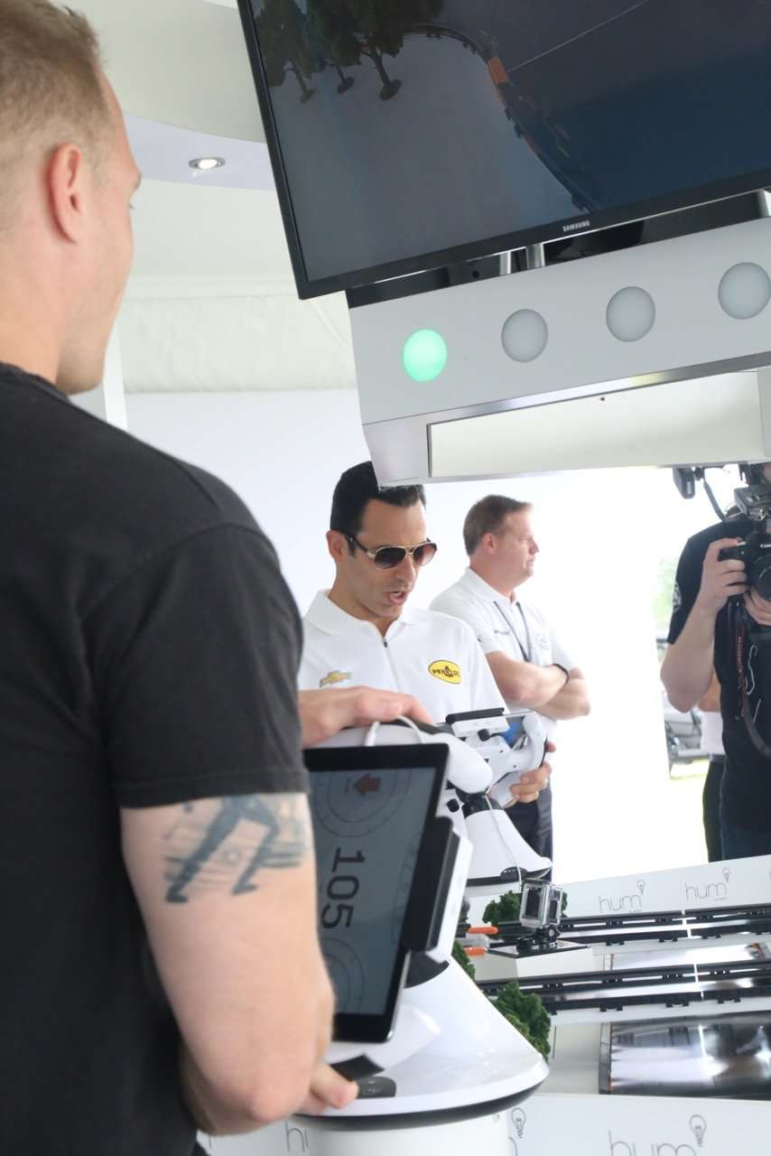 This really happened folks. I squared off against three-time Indy 500 champion Helio Castroneves in the Verizon hum remote control car race. In this pic he asked for directions on “how to use this thing” and I pretended not to hear him.