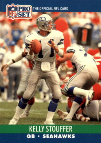 I strategically inserted Jeff Chadwick for Brian Blades, as Chadwick is a money player when it comes to throwing blocks for my man James Earl Jones. I got to 8-0, halfway point of the season, and in game #9 Krieg finally got injured on a sack. Right as he was carted off the field, the young woman in the kitchen said, “Stouffer’s Pizzas are ready!”