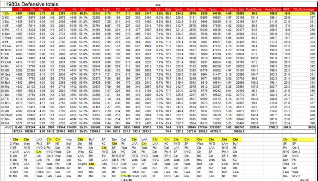 Below is a graph that shows how the Bears defense dominated the entire 1980’s. 16 outta 23 categories they ranked #1!