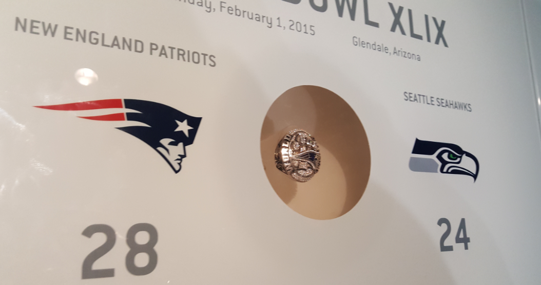 Accompanying each Patriots’ Super Bowl trophy are the actual rings that players and coaches received. Here is the Patriots Super Bowl XLIX ring: