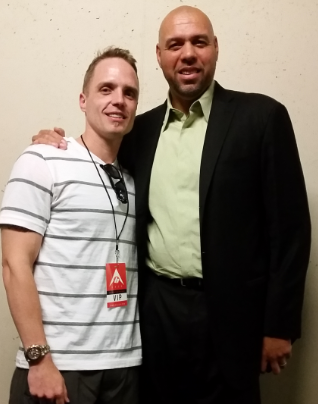 So when I saw him leaning against a wall in the lower level of Ralston Arena, I had to tell him that. And, have my daughter take a pic.